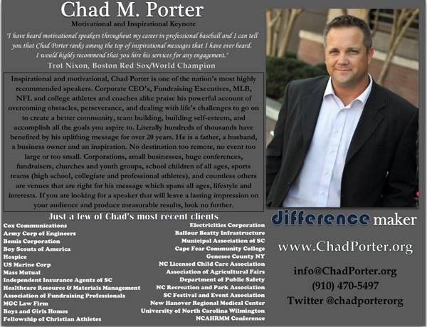 I’ve worked with CEO’s and executives on improving their business by encouraging their employees. I’ve spoken to MLB, NFL, and college athletes on the premise of being a team player and unlocking leadership skillsets that are inside all of us and fighting through what appears at the time as insurmountable.